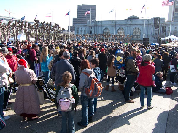 This is going to be a bit of a short report. I didn’t take a lot of pictures of signs that were the same as last year. What I was primarily interested in was that the event got bumped from their usual location by a competing event – the West Coast Rally for Reproductive Justice who apparently got their permit application in earlier or something. This was just as well since the Walk for Life totally overflowed their location, and the new location in front of City Hall is much better. It’s not only larger but also the walk was was right smack down the middle of Market Street instead of around the edge of the town.
