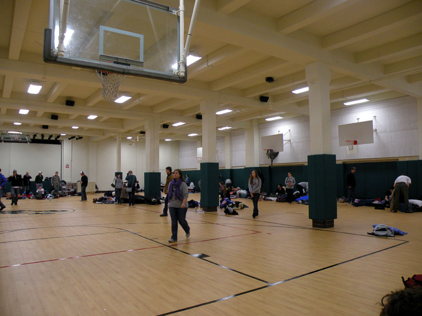 These young people, getting ready for the Walk, after a night’s rest on a cold, hard floor are from Thomas Aquinas College and John Paul the Great University:
