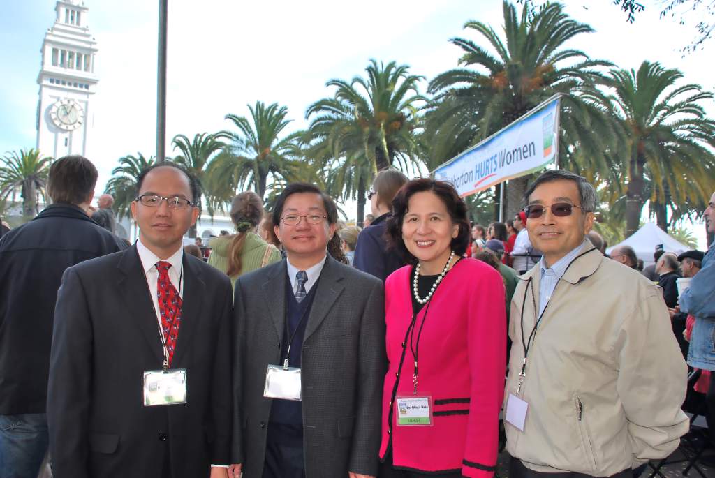 Left to right: Rev. Tan Tieu, spokesman of San Francisco Chinese Churches Union; Frank Lee, chief coordinator of Asian Americans Pro Life; Dr. Olivia Hsia, advisor of Asian Americans Pro Life; and Dr. Ed Cheng, advisor of Asian Americans Pro Life. God bless them!